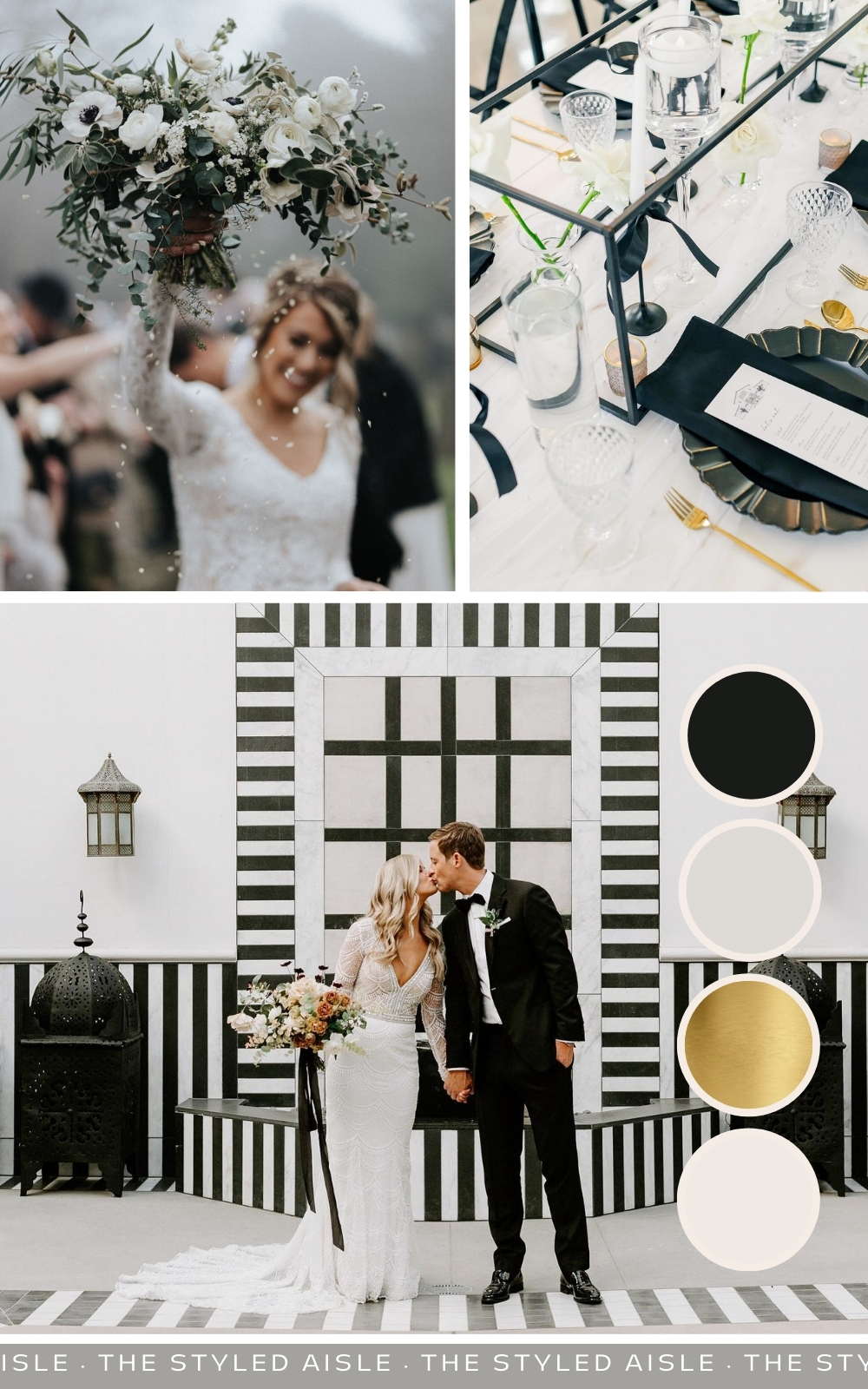 Why it works: The bold contrast of black and white creates a sophisticated foundation, while gold accents add warmth and elegance.