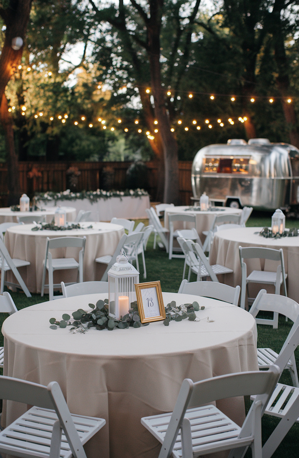 Turn your backyard into a retro paradise with a small vintage Airstream trailer as a focal point. Use it as a bar, photo booth, or dessert station.