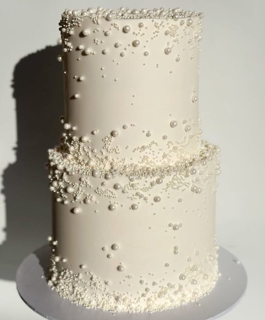 A dazzling confection covered in cascading edible pearls, this cake is the ultimate in bridal sophistication. Perfect for the bride who wants a cake that sparkles as much as her engagement ring!